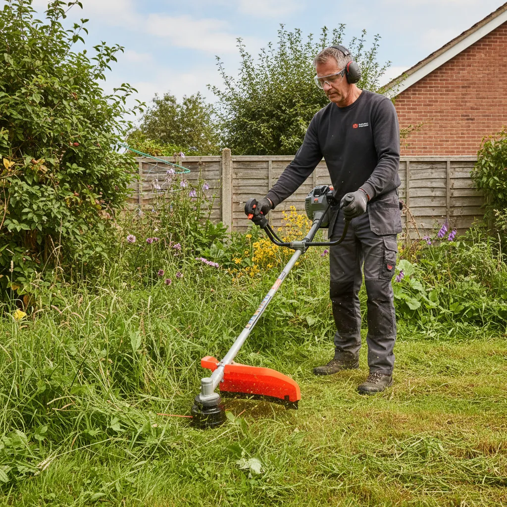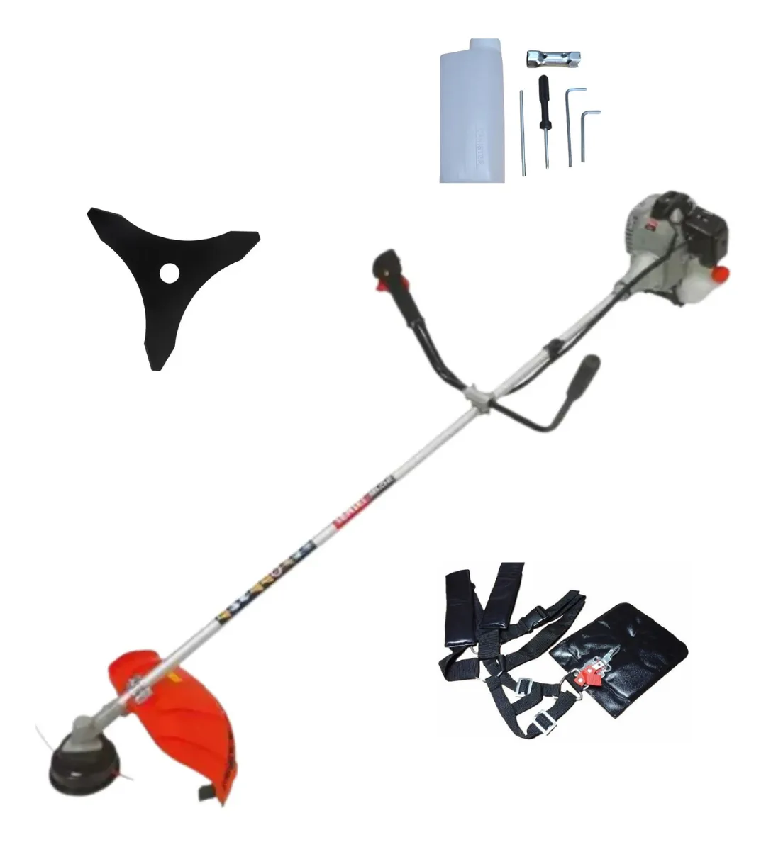 Herramienta robusta y eficiente, ideal para el desmalezado intensivo en terrenos medianos o grandes. Equipada con cuchilla de 3 puntas y cabezal de tanza automático, ofrece gran rendimiento tanto en hierba como en vegetación más densa.